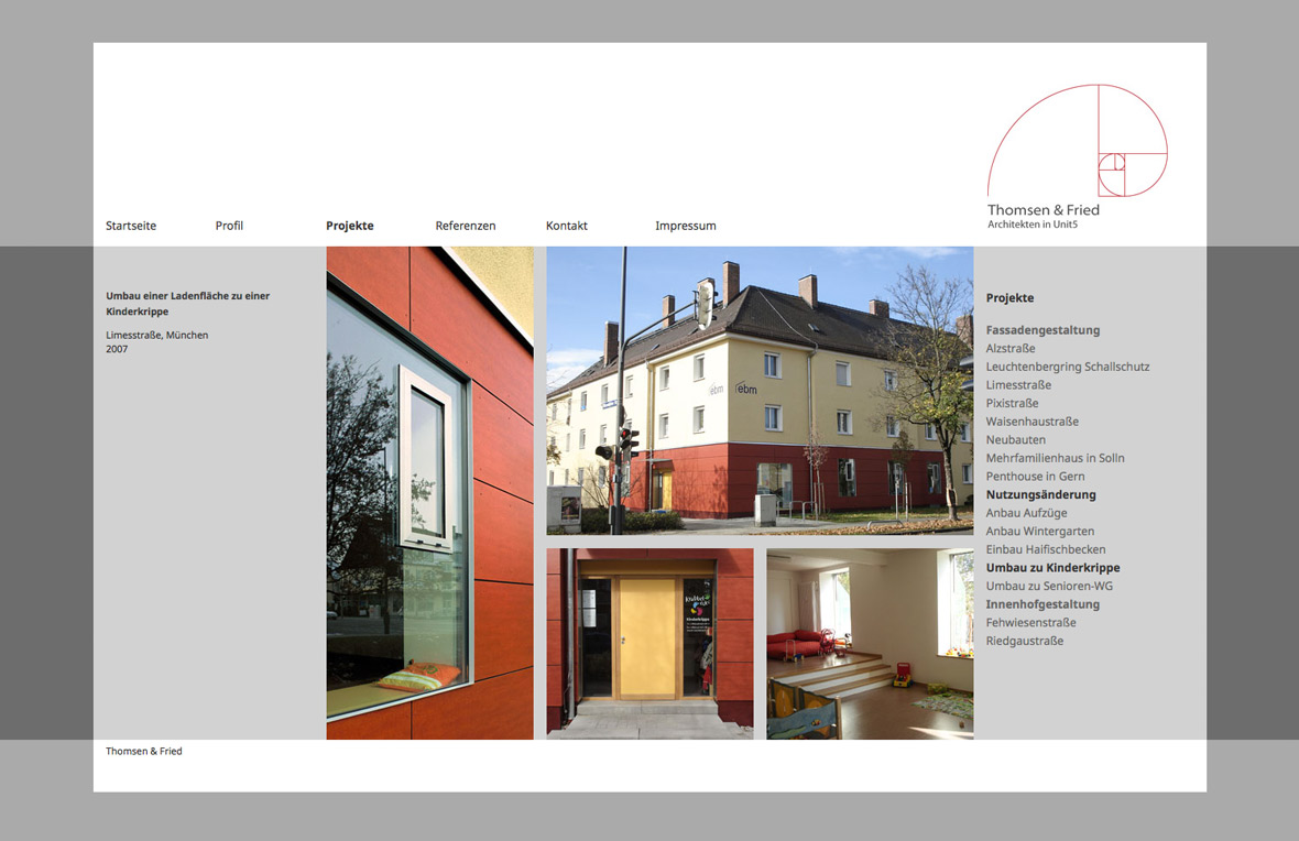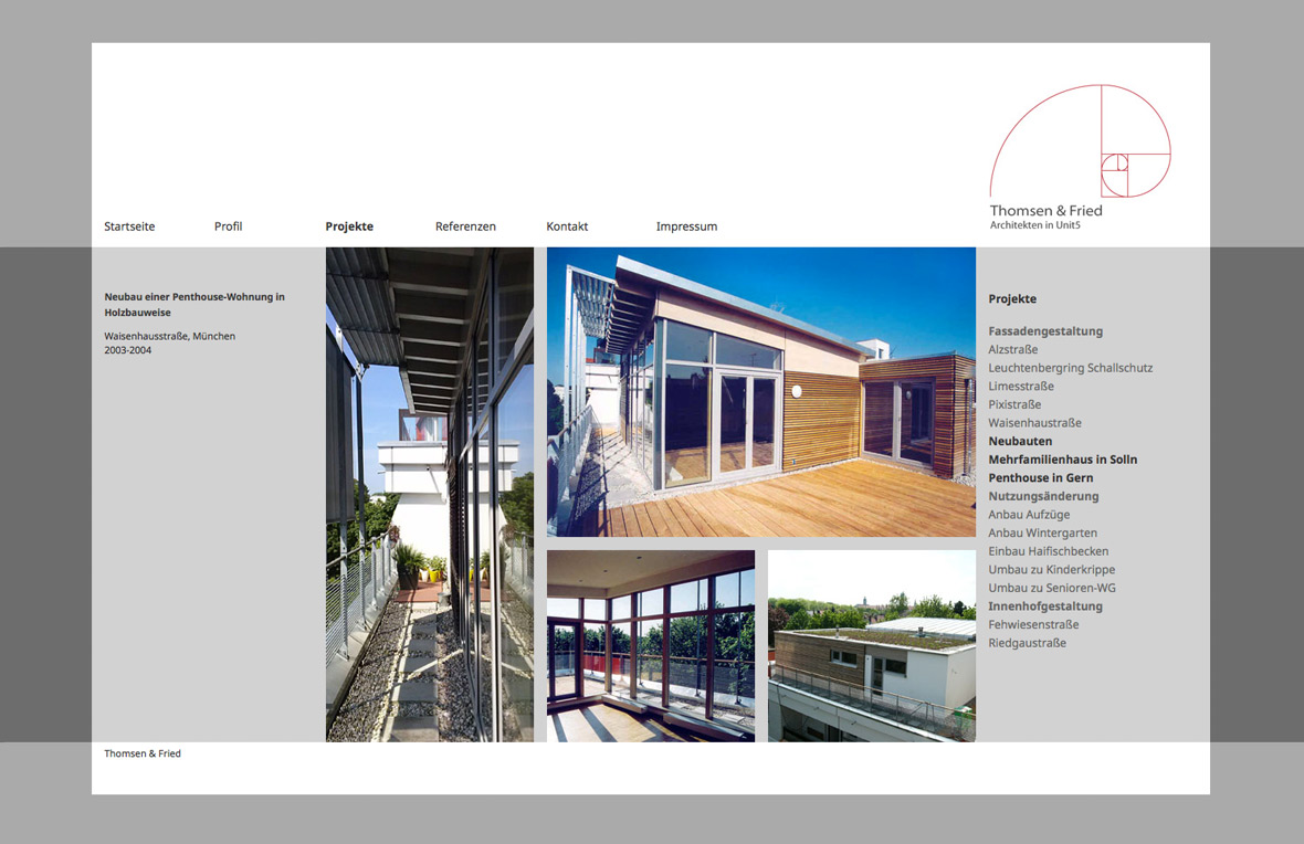 Die moderne Website entspricht der klaren Formensprache der Architekten. Sie basiert auf einem Rastersystem, in das alle Elemente der Website eingepasst werden.